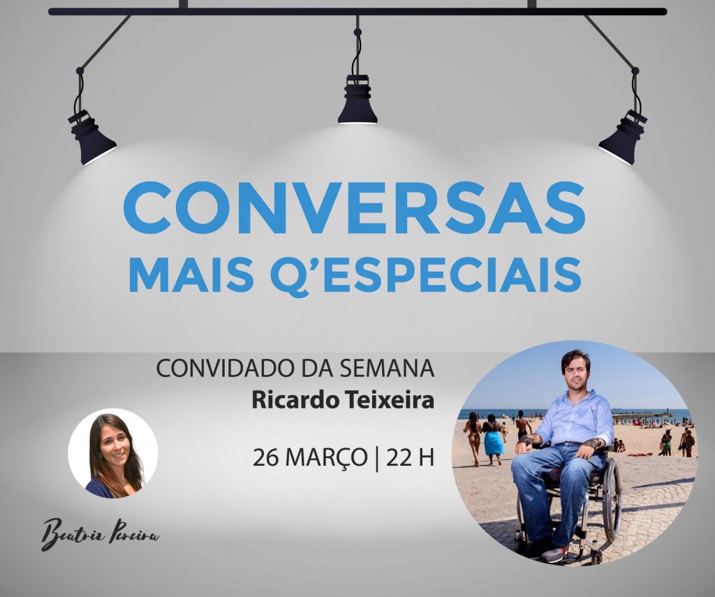 Conversa Mais q’ Especial #6 Conversa Mais q’ Especial com Ricardo Teixeira No dia 26 de Março tivemos o privilégio de conversar com Ricardo Teixeira na rubrica Conversas Mais q’ Especiais! … e que bela conversa que foi!! Ricardo Teixeira veio partilhar connosco um pouco da sua história desde um acidente que teve aos 17 anos. […]
